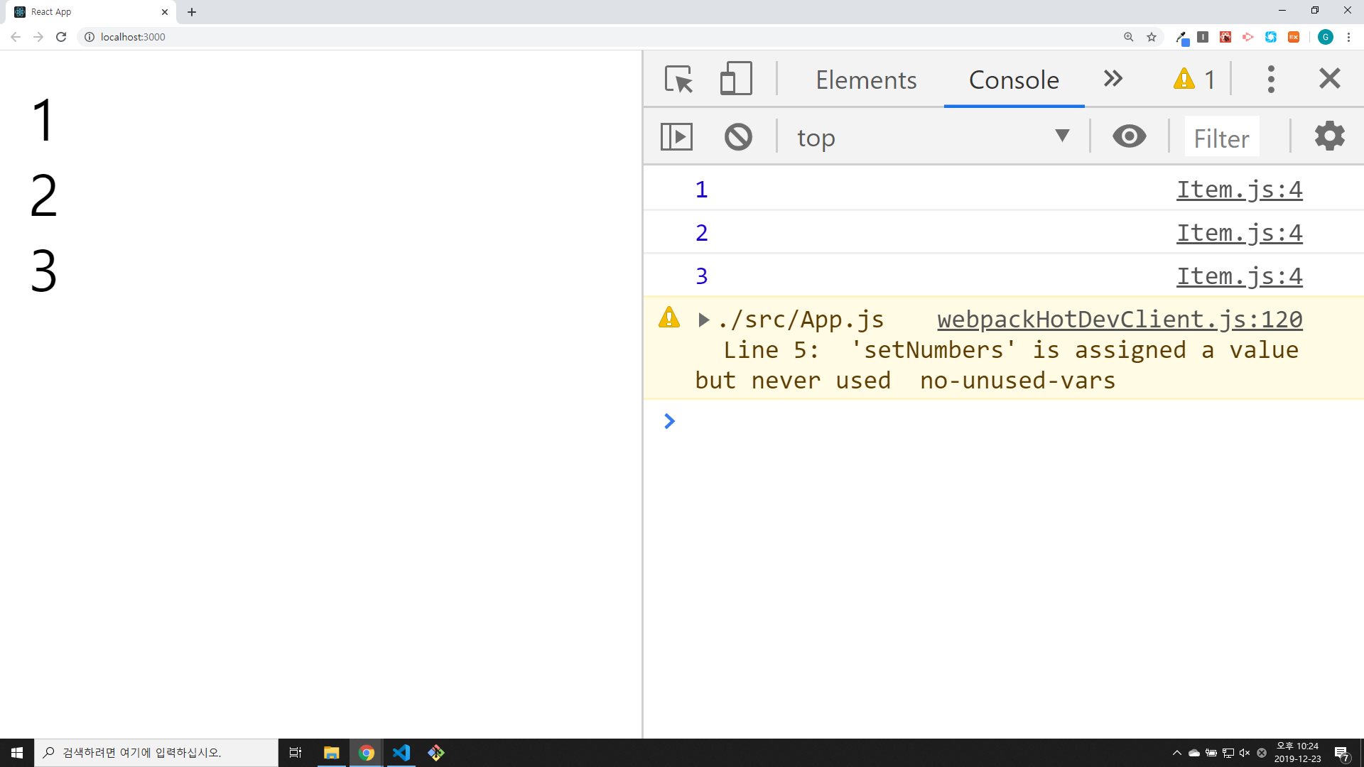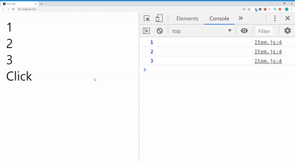 각 Item 컴포넌트가 렌더링 되면서 콘솔창에 num이 출력되었습니다.