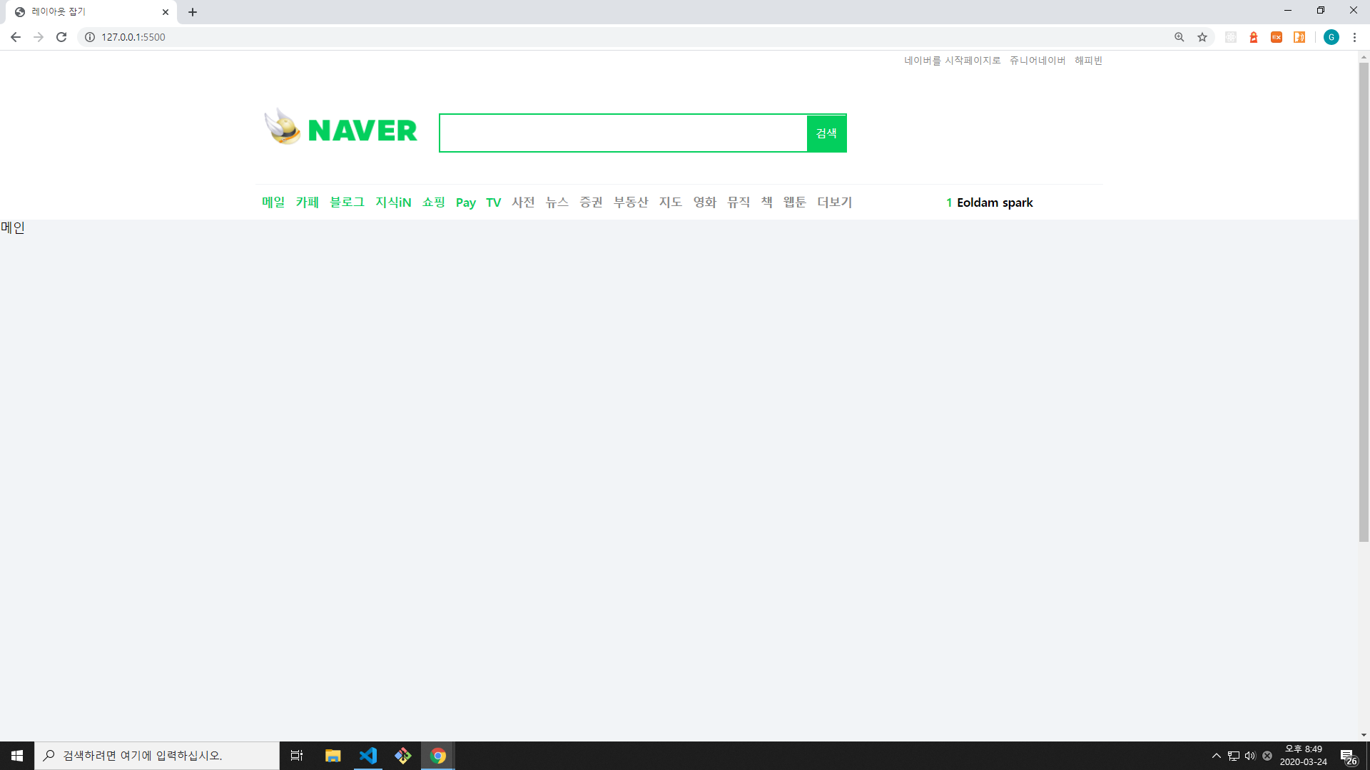 네이버 사이트를 그대로 카피하면서 레이아웃을 잡는 연습을 해보겠습니다. 웹개발 초기에는 이렇게 잘 만들어진 사이트를 클론코딩하는 게 실력향상에 큰 도움이 됩니다.