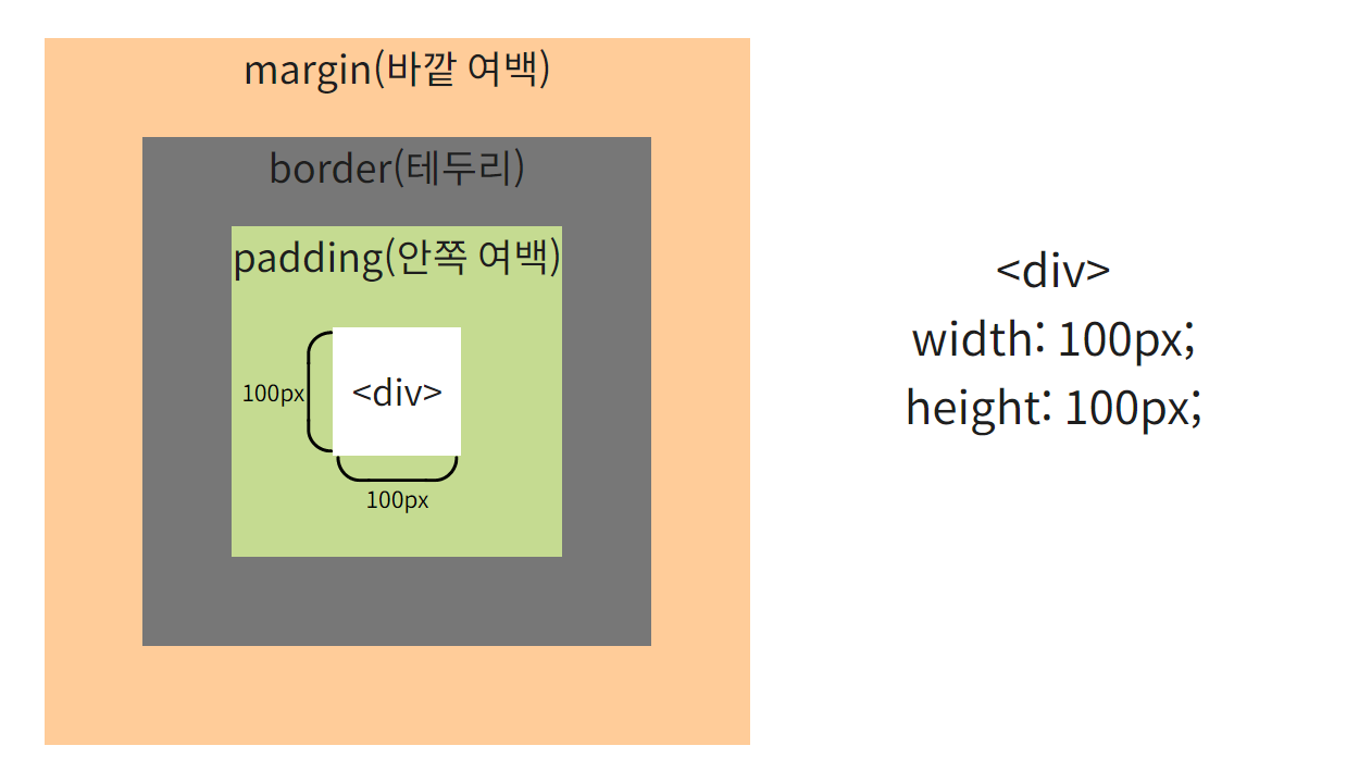 | content-box | 설정한 크기가 padding, border, margin을 제외한 순수한 요소의 크기가 됩니다. |