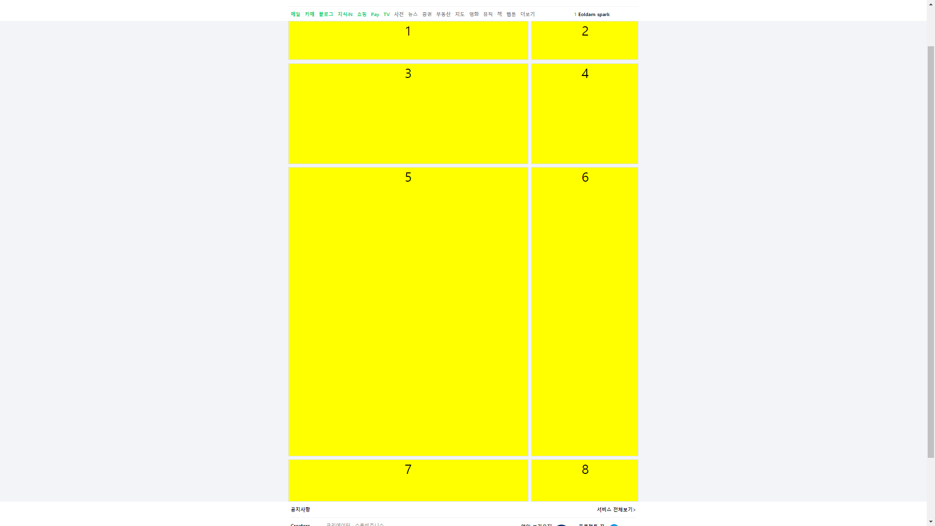 다음으로 1~8번 구역에 각 cell을 할당해 주면 됩니다. grid-column과 grid-row 속성을 사용합니다.