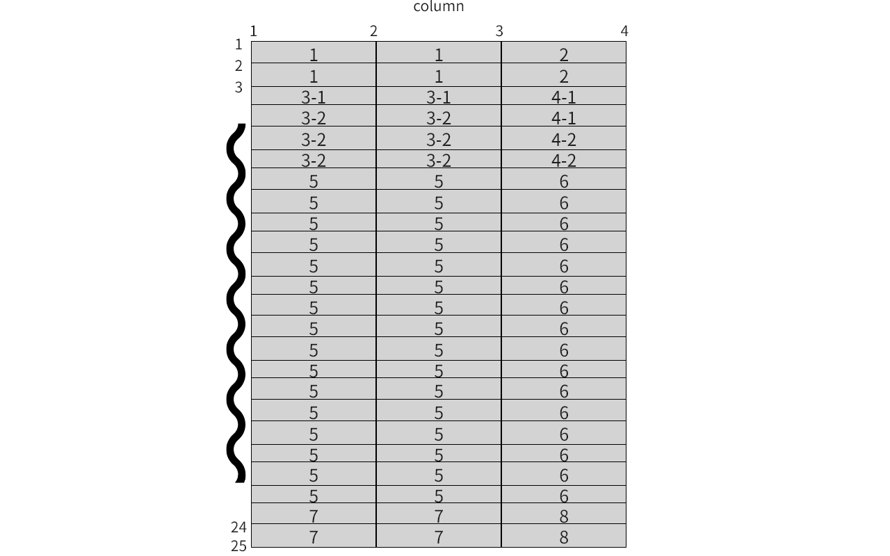 여기에 사용되는 column번호와 row번호는 다음과 같습니다.