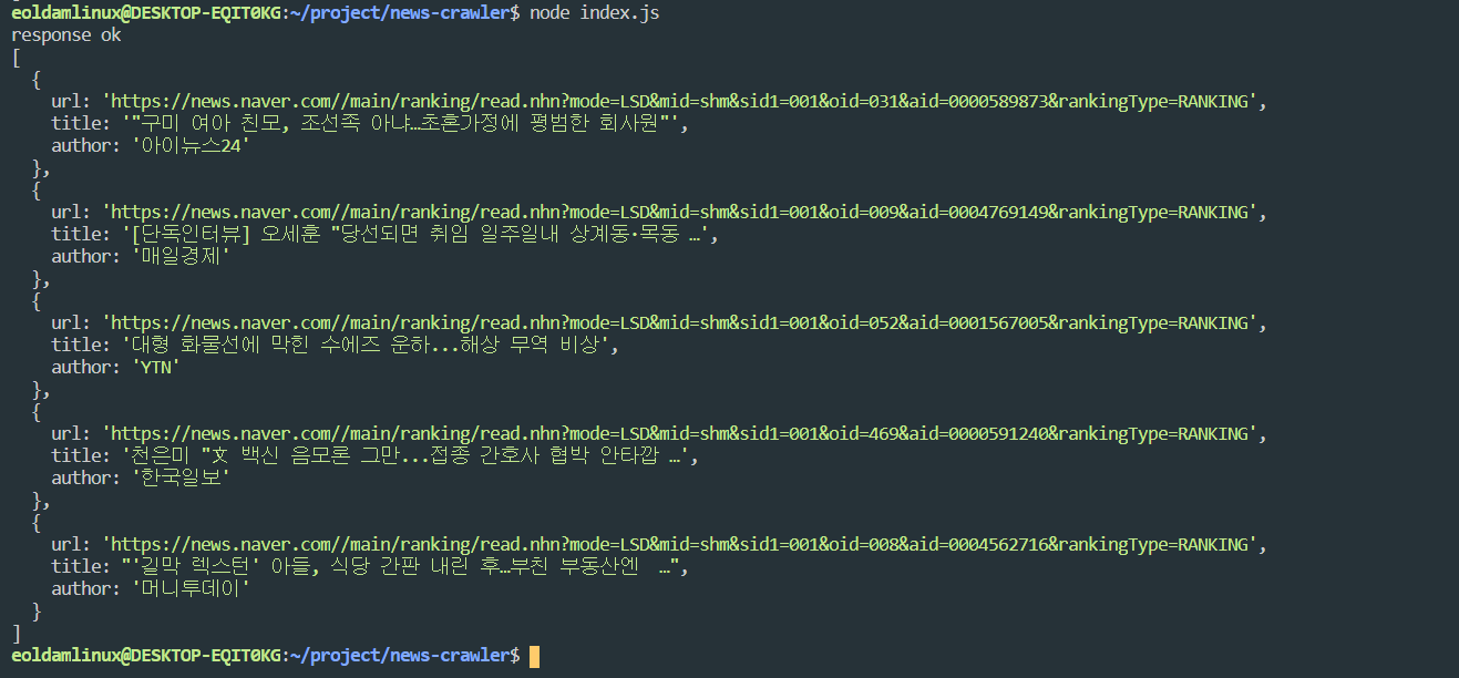 크롤러를 만들기 위해 npm 프로젝트를 생성해 줍니다.