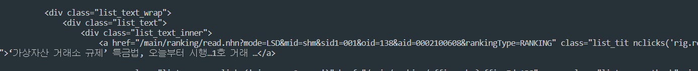 네이버 뉴스로 돌아가셔서 사이트의 DOM을 보시면 class명이 list_text_inner인 div에 필요한 데이터가 모두 담겨있습니다.