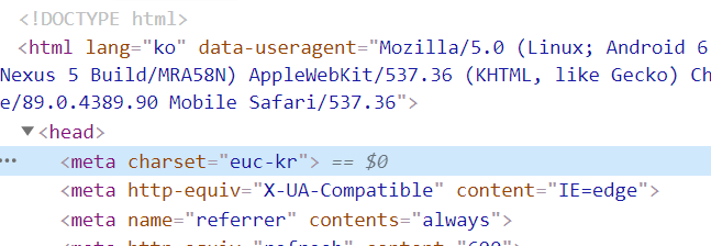 출력되는 <html> 안에 깨진 글자들이 다수 보입니다. 타겟 페이지의 charset이 utf-8이 아닌 경우 위와 같은 현상이 발생합니다.