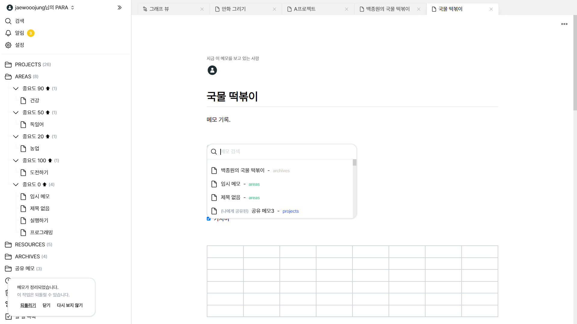 사용자는 메모 공유, 권한 변경 등에 대한 실시간 알림을 알림창에서 바로 확인할 수 있습니다. 이 기능을 통해 중요한 변경 사항이나 업데이트를 놓치지 않게 됩니다.