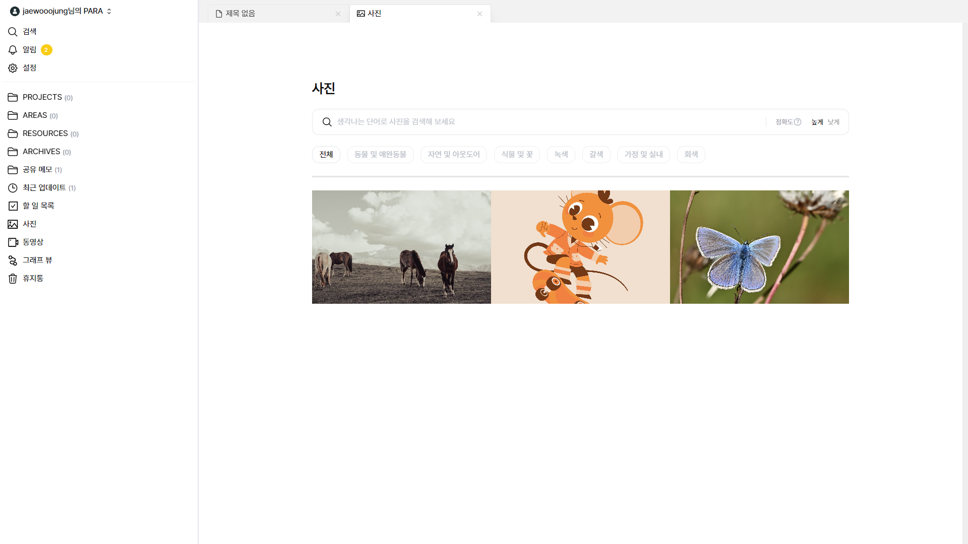 사용자가 업로드한 사진은 일정 시간이 지나면 자동으로 태그가 부여되며, 사용자는 생성된 태그를 통해 사진을 쉽게 검색할 수 있습니다. 이 기능을 통해 사용자는 추가로 노력을 기울이지 않아도 언제든 원하는 사진을 검색할 수 있습니다.