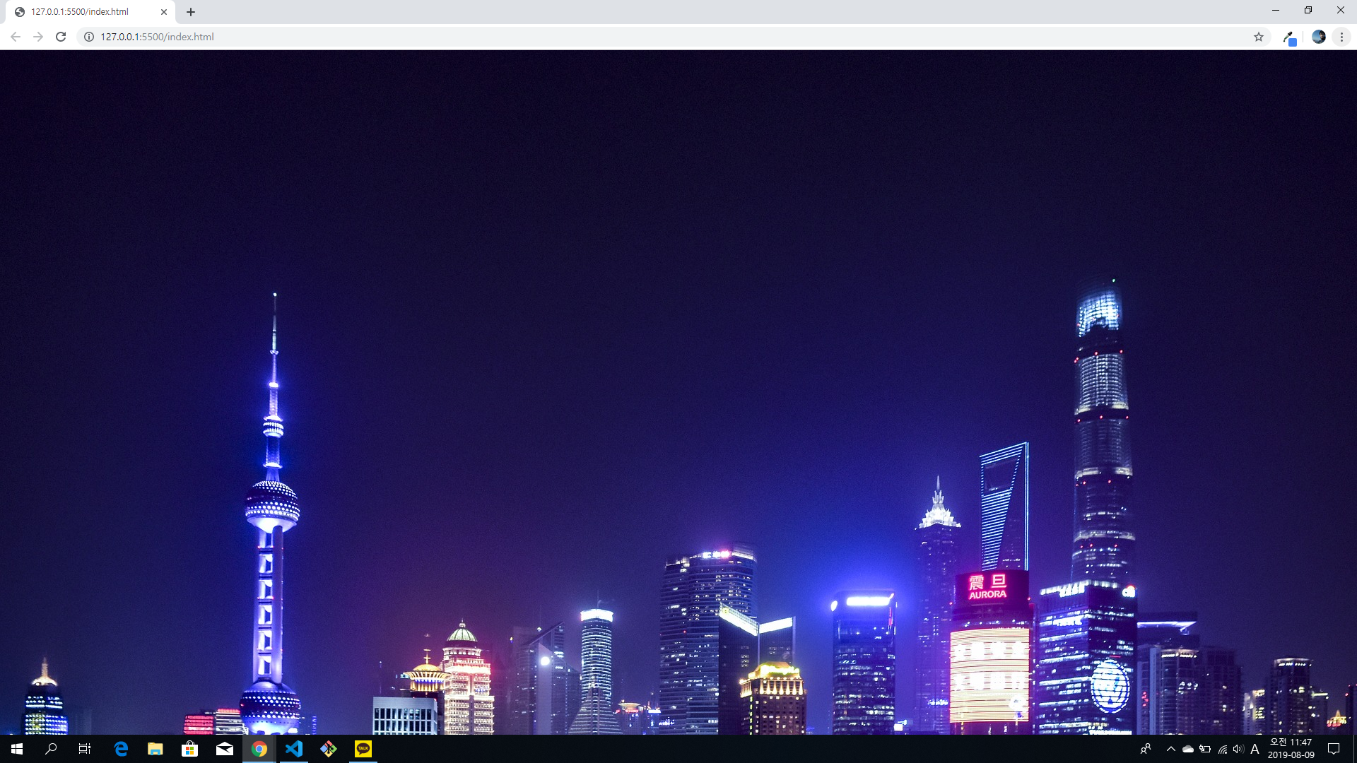현재는 div가 비어있는 상태입니다. 이곳에 배경화면을 지정해 보겠습니다. 이미지는 프로젝트 폴더 내부의 파일을 사용합니다.