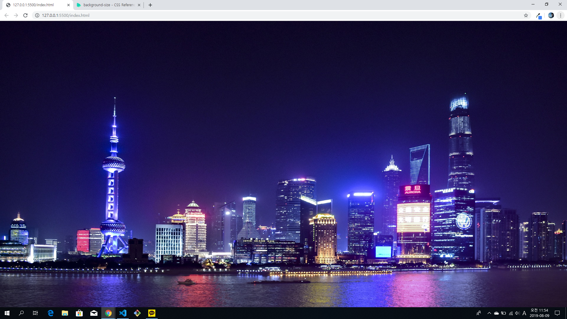 배경화면이 적용되었지만 shanghai.jpg 원본과 비교해 보면 아래쪽이 잘렸습니다.