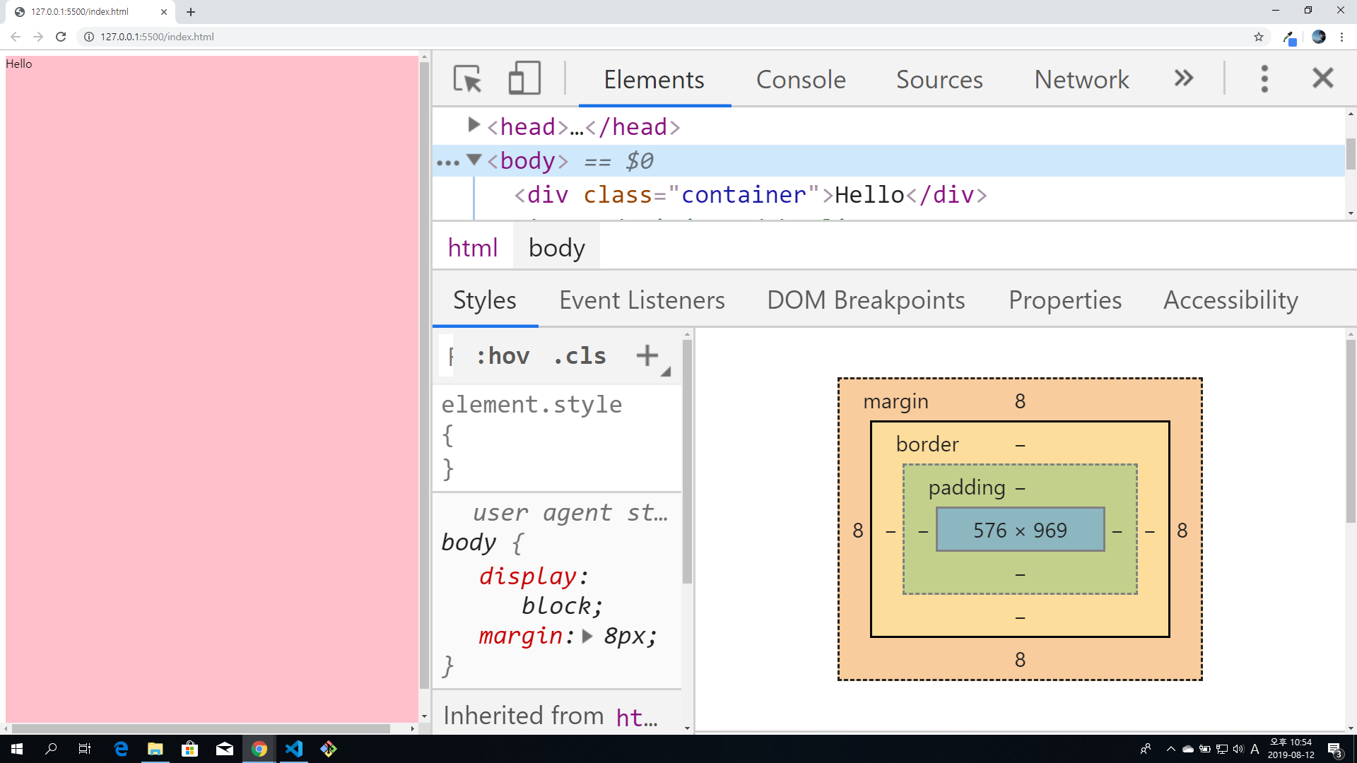 body에 margin이 상하좌우 8px씩 붙어있습니다.