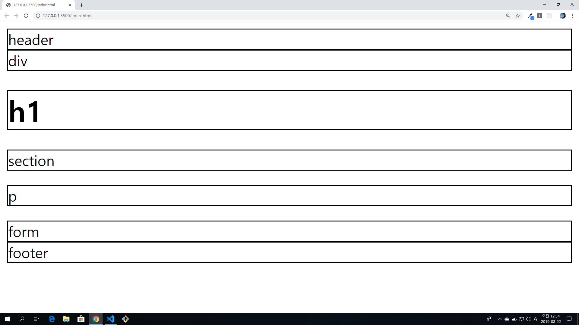 이미지에서와 같이 block요소들은 기본적으로 한 줄 전체를 차지합니다.