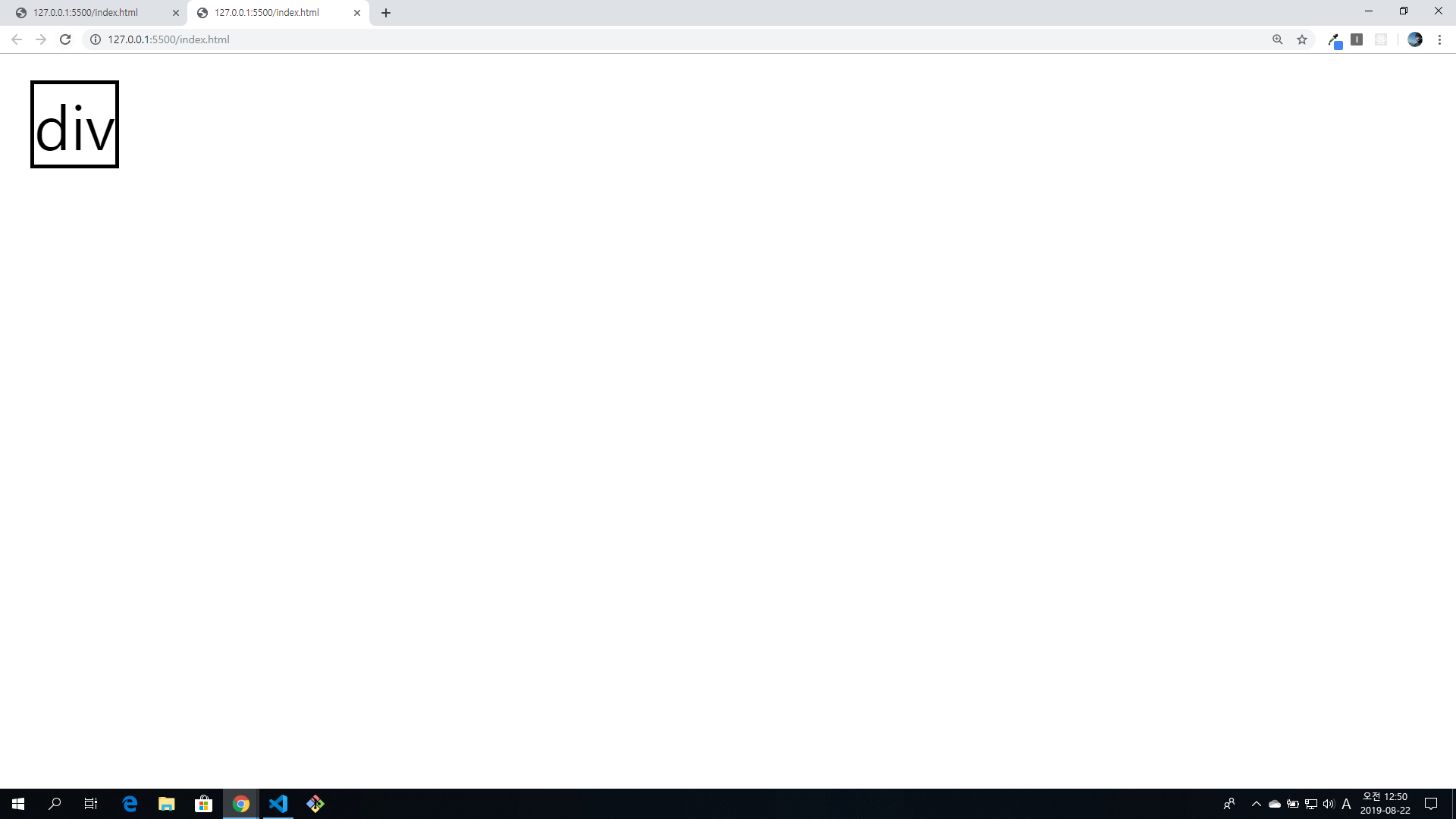 display 속성의 기본값이 block인 div에서 속성값을 inline으로 변경한 모습입니다.
