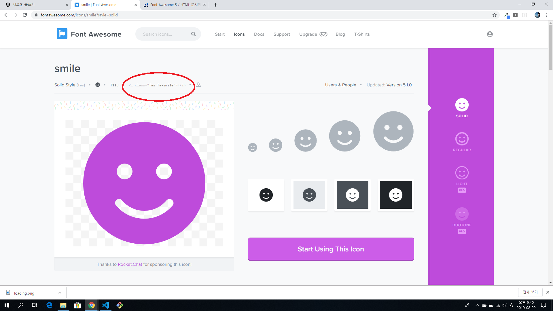 HTML에서 fontawesome 아이콘을 사용하는 방법입니다.(V5)