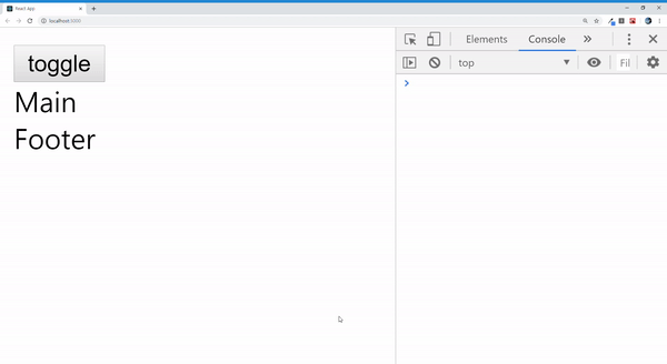 위 코드는 if, else 구문과 동일하게 보이지만 성능상 큰 차이가 있습니다. 바로 showing state에 관계없이 아래에 있는 Main과 Footer가 동일한 JSX로 유지된다는 것입니다.